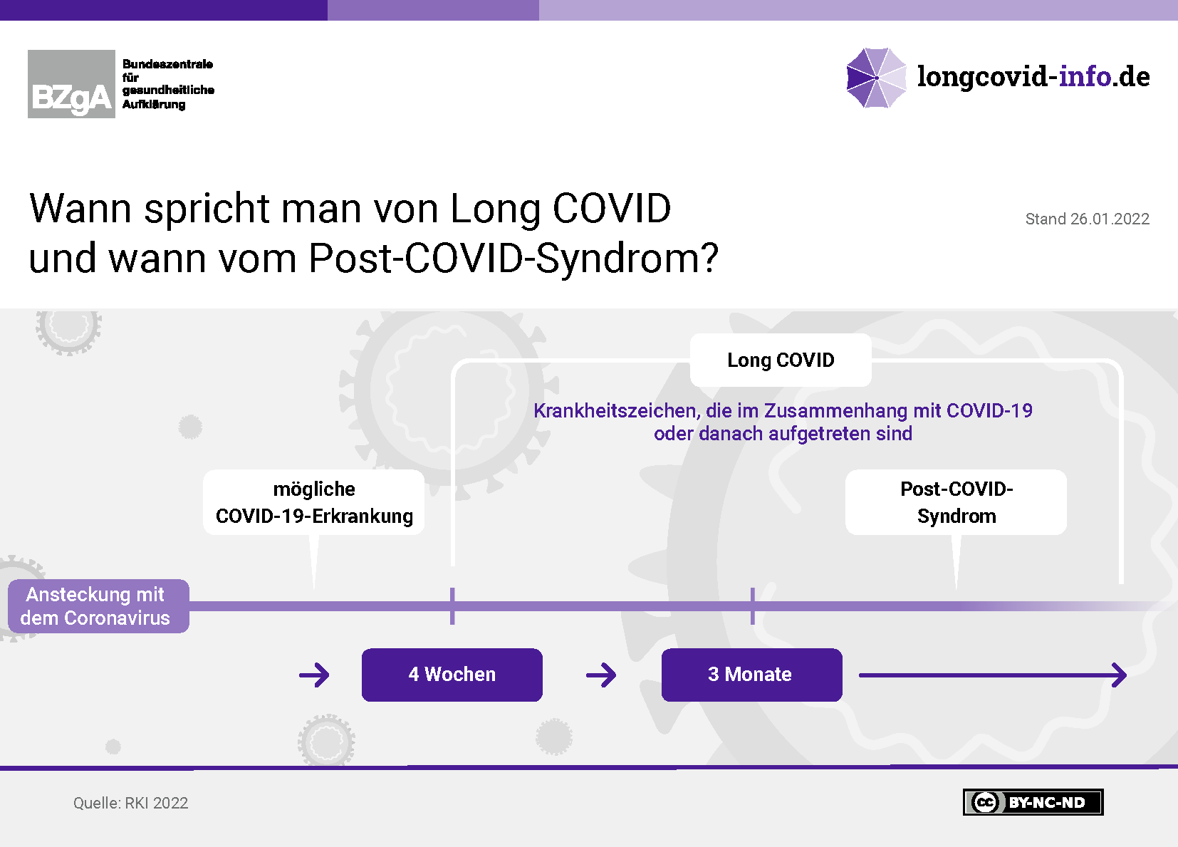 Mehr als zwölf Wochen nach der Infektion oder Erkrankung bestehen noch immer anderweitig nicht erklärbare Symptome oder es treten neue auf.